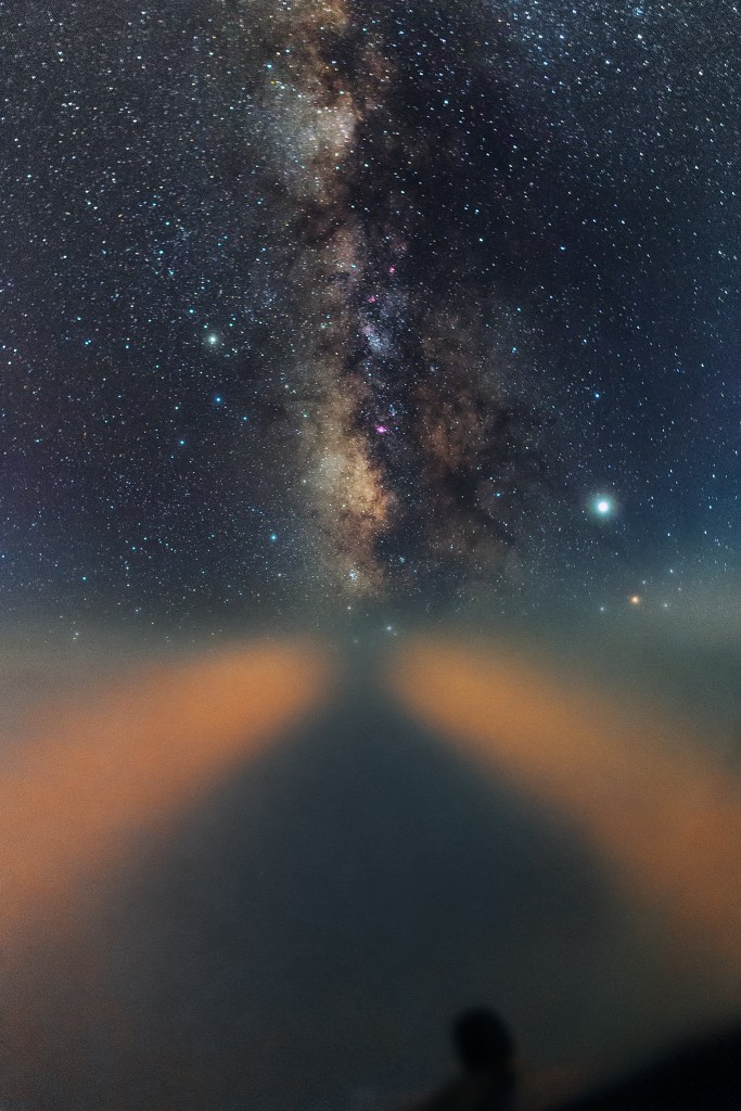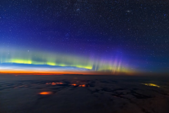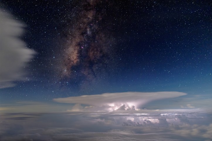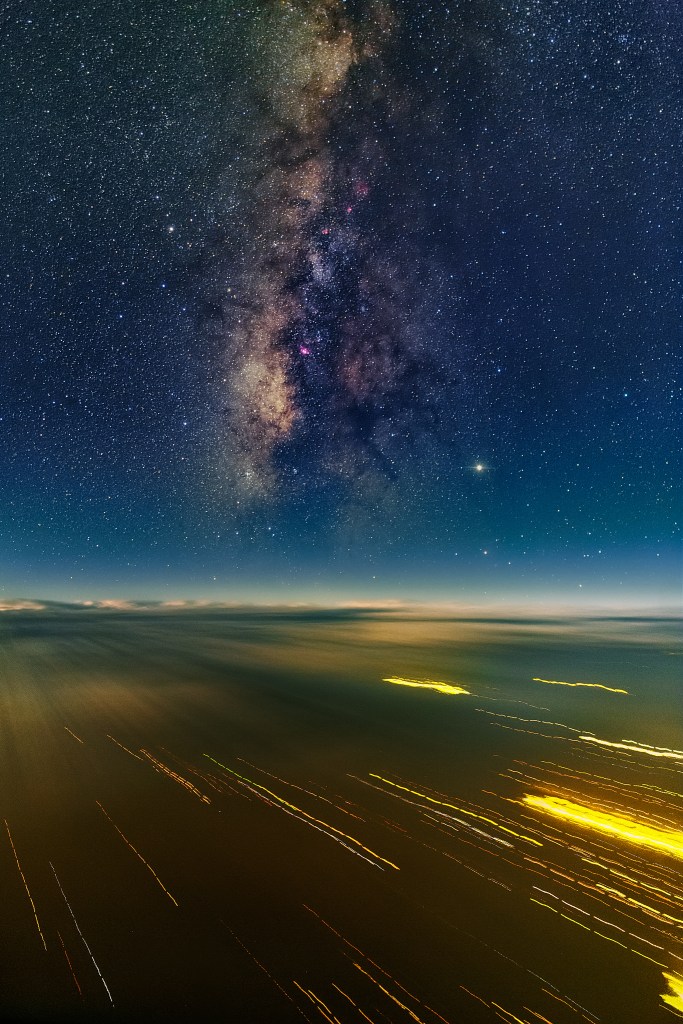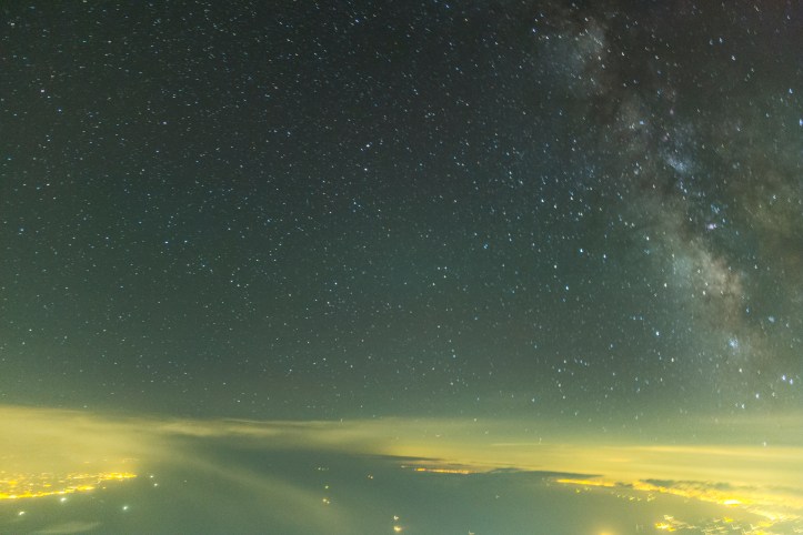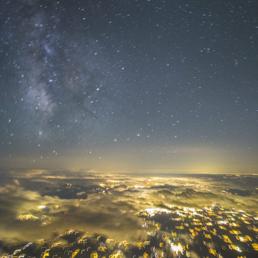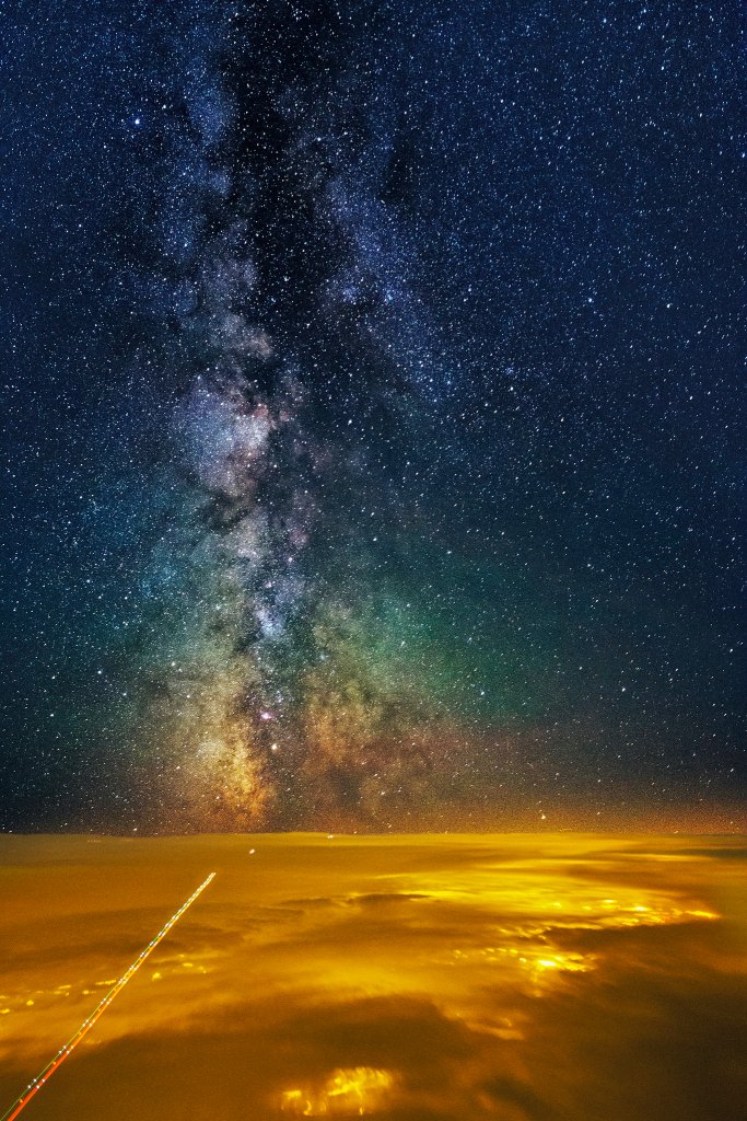 As in terrestrial nightscapes, the Milky Way is the most prominent target, but there are other interesting things out there. Northern lights, thunderstorms or constellations can keep you shooting on every night flight without the need for on board entertainment.