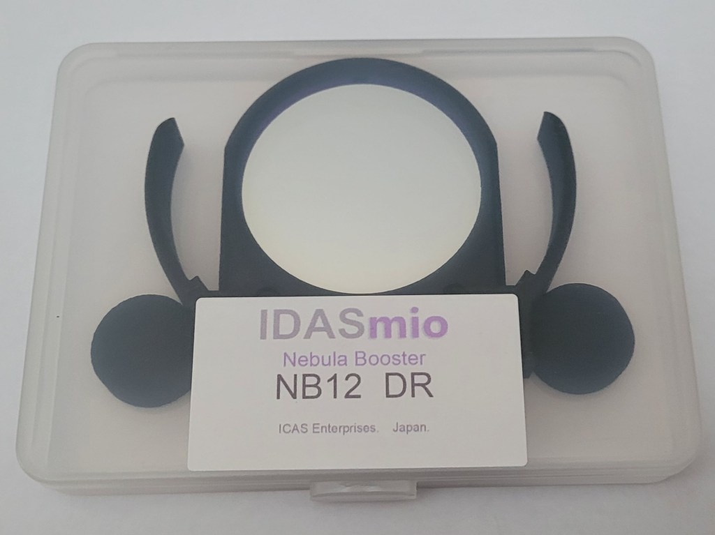 As usual when you buy new equipment, I was clouded out for about a month after receiving my NB12, but a few nights ago, a short break in the cloud cover allowed me to do a quick test. The conditions were far from perfect, with occasional clouds passing through, a 14% illuminated Moon in the sky, and my backyard being in a bortle 5 zone. None of this is ideal for astrophotography, but I was curious to see what my narrowband filters are able to achieve under such conditions. As I also own an IDAS NB1 tri-band filter with broader passband (Hβ, Ha & Oiii), I threw this one into the challenge as well.