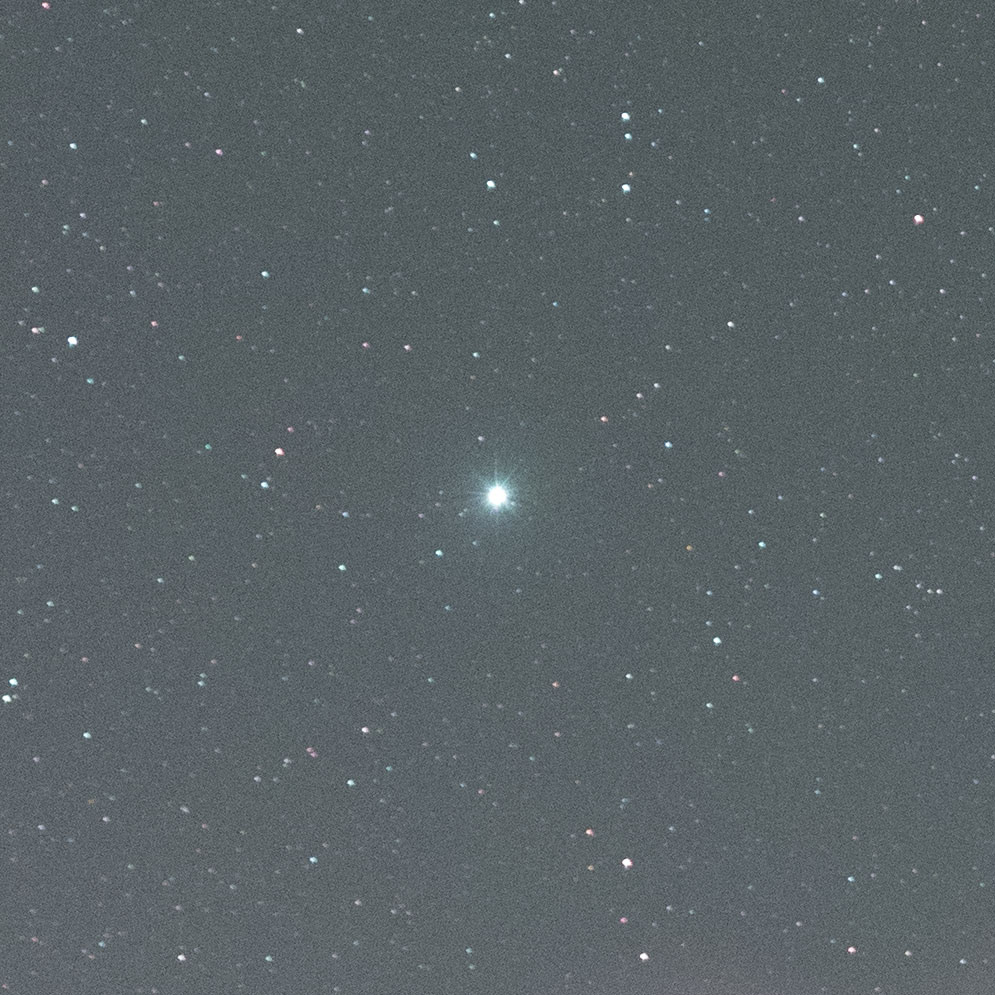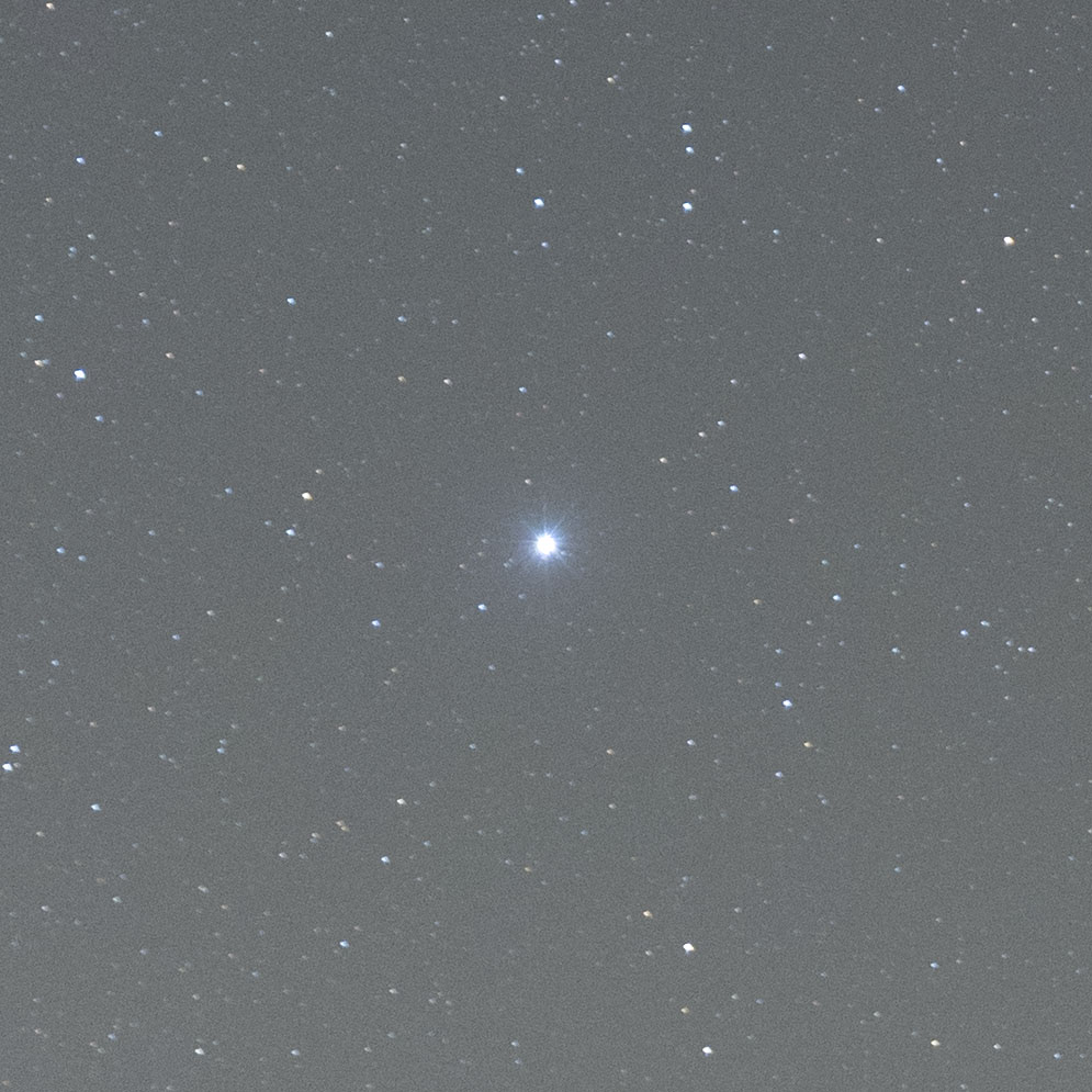 Filters can cause ugly halos around bright stars and some narrowband filters are known to have this problem. What about the NB12? In the 100% crops below, I captured Sirius, the brightest star of the night sky, in the corner of the frame. As you can see, neither the Canon Clear filter, nor the IDAS NB12 causes any halos. Great! I am happy to see that halos are a non-issue.