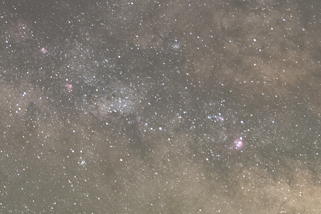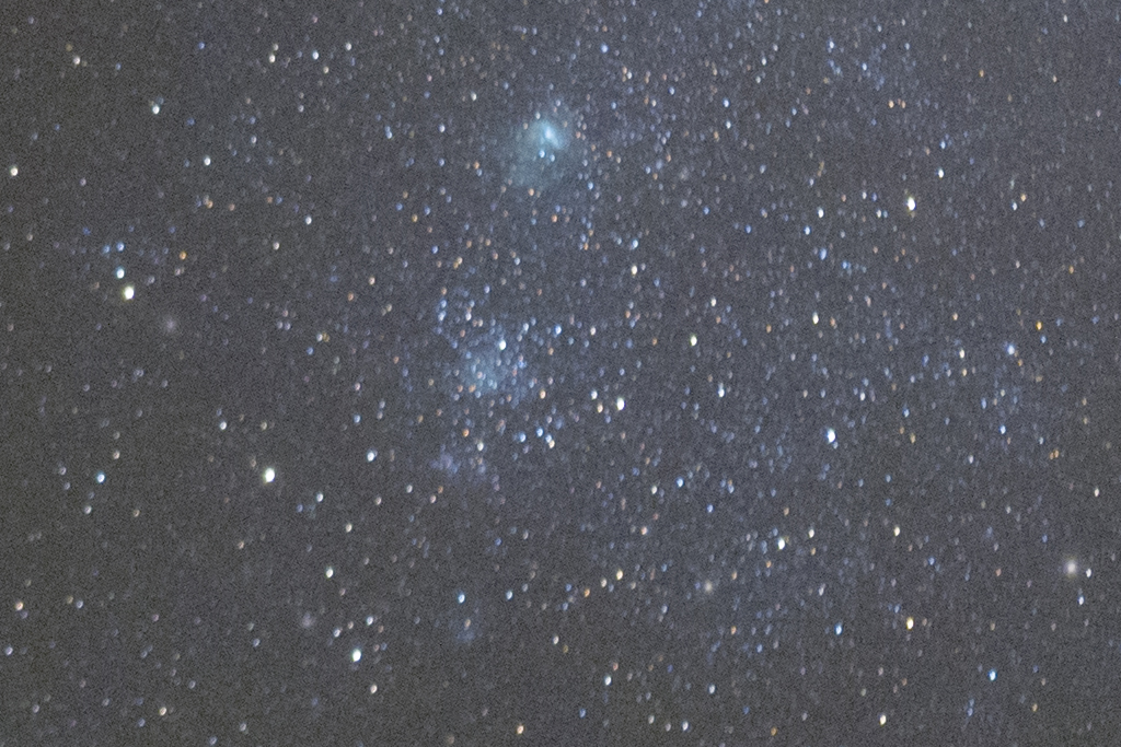 Unfortunately, things went wrong during the imaging run of the Small Magellanic Cloud (SMC). When checking the exposures back at home, I noticed that the sensor plane of my camera must have been tilted, resulting in increasingly out of focus stars from the middle to the left edge of the frames. While the right side of the exposures was better, it neither was 100% sharp, due to the breezy shooting conditions. I was very disappointed but my data was not usable for processing. A clear case for the bin.